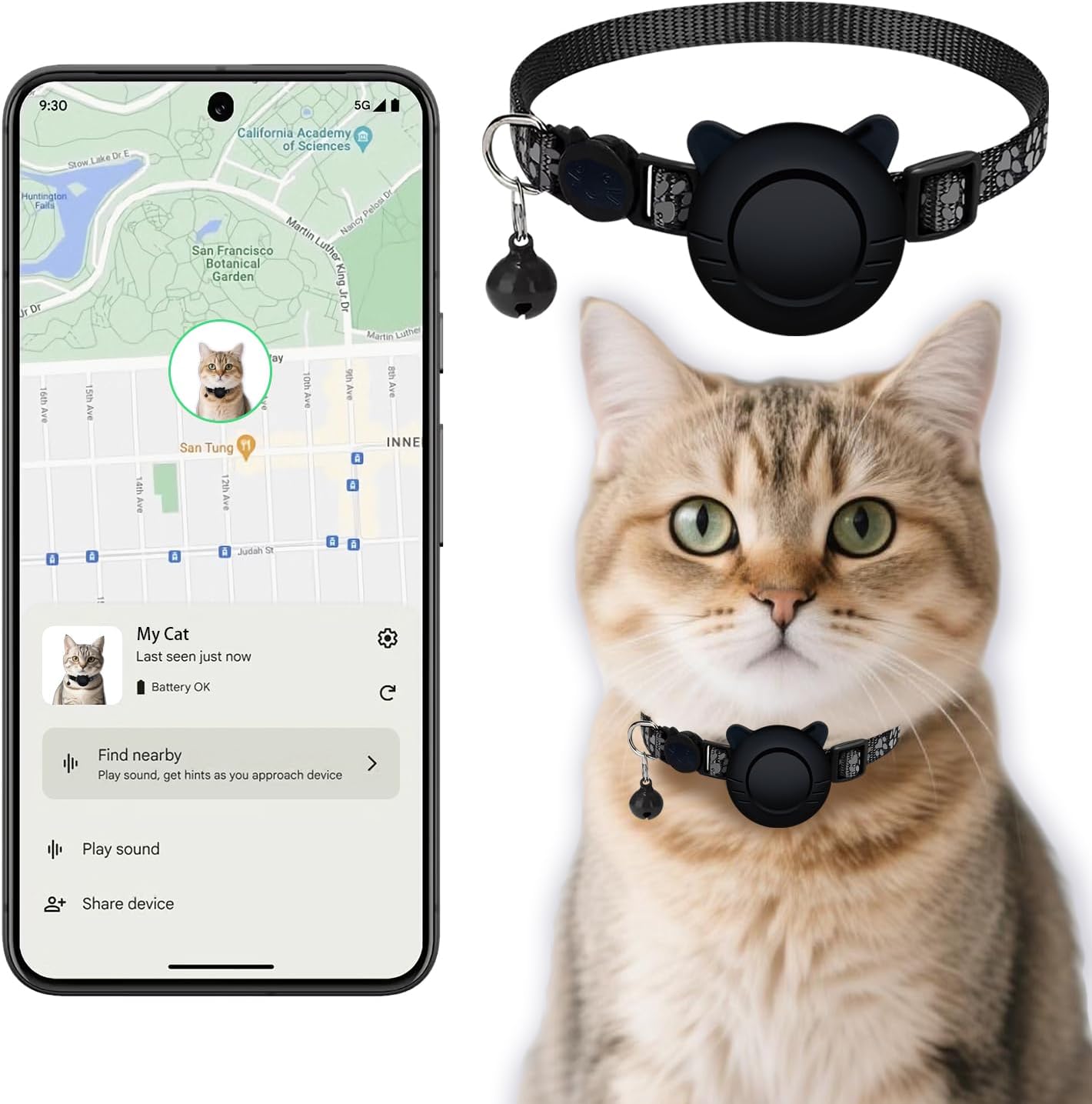 Advanced GPS Cat Tracker Collar**: Enhance your cat's safety with our GPS Cat Tracker Collar, Google Certified and tailored for Android users. Easily connect with the "Find My" app (Android 9 or higher required) for precise real-time tracking of your beloved feline companions.