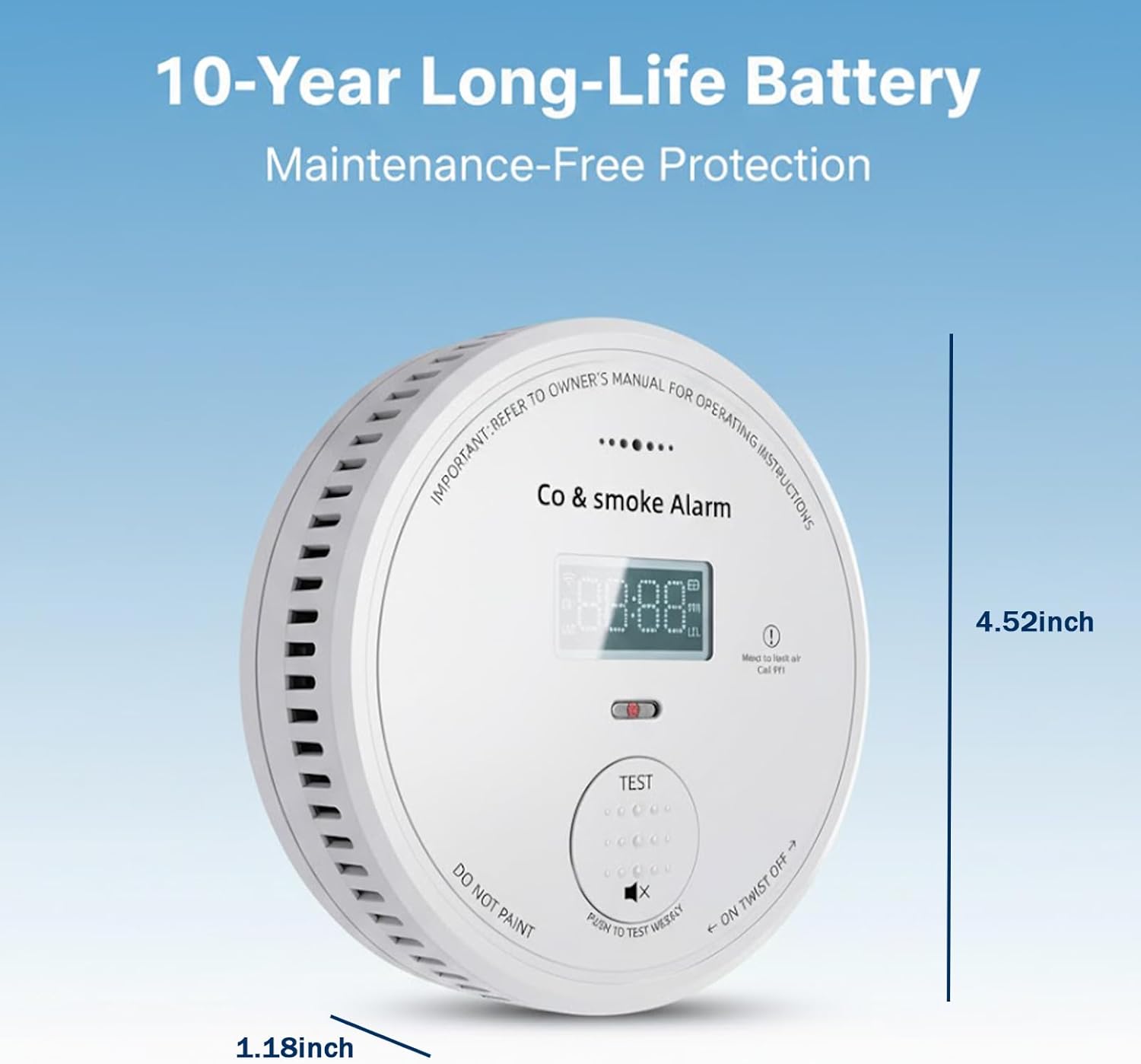Sealed 10 Year Lithium Battery: Comes with a permanent, non-replaceable battery that delivers reliable power for ten years, eliminating maintenance.