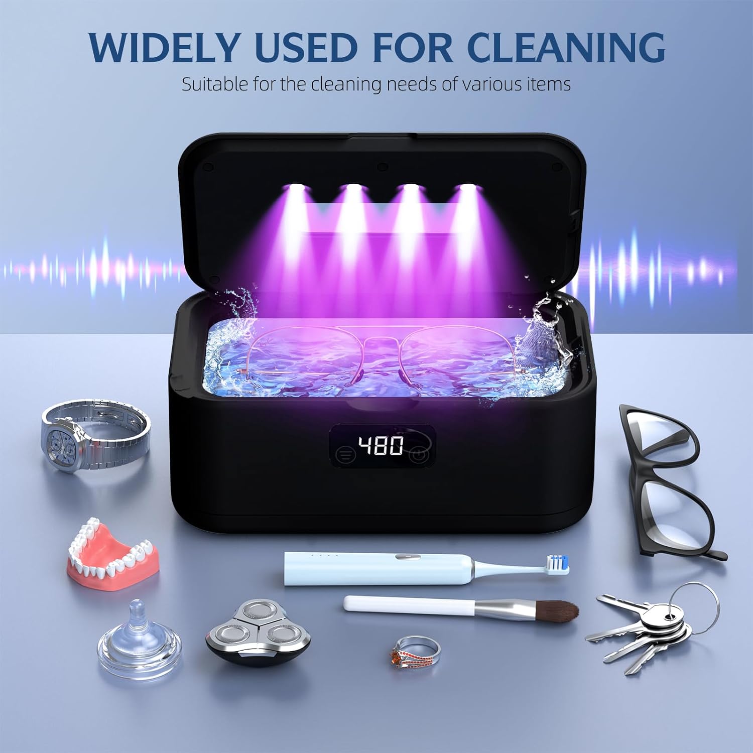 Dual-Intensity Cleaning: This jewelry cleaner combines 50kHz high-frequency ultrasound with UV light technology. The powerful microbubble cavitation penetrates intricate designs to effectively remove surface oils and grime, restoring your items' original shine