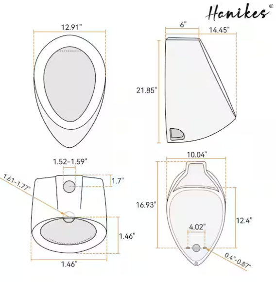[V4520]Round 0.125 GPF High-Efficiency Urinal with Top Spud in White-(Image review)