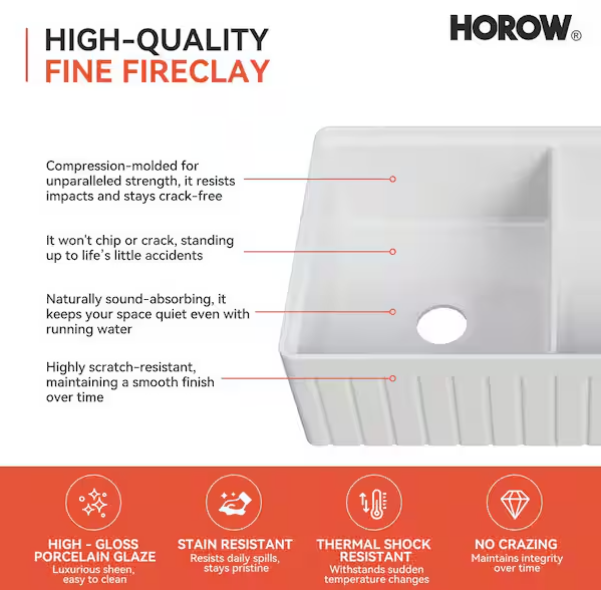 Kiln-fired fireclay for superior hygiene and durability