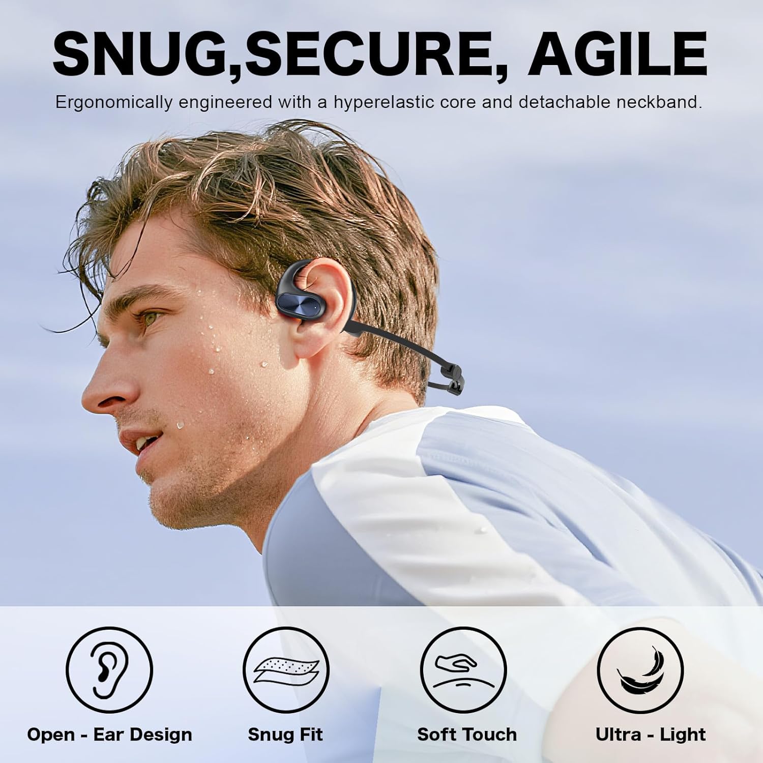 【Comfort-Fit Open Ear】 Experience a feather-light, non-intrusive fit that eliminates ear pain and pressure. Unlike traditional in-ear earbuds that can cause fatigue, our open-ear headphones rest gently outside your ear canal, allowing you to enjoy music, podcasts, and calls in complete comfort for hours on end. The ergonomic design ensures a secure yet barely-there feel, making them your perfect companion for work, travel, sport, or relaxation.