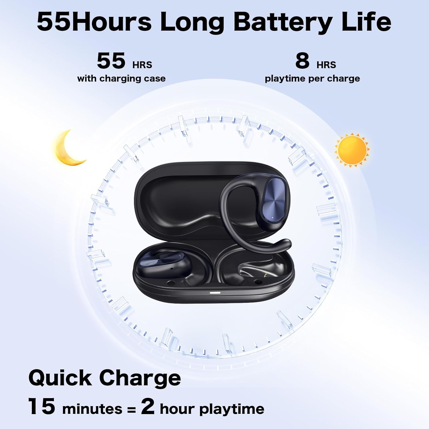 【Stable 5.3+ & 55-Hour Playtime】Enjoy a seamless wireless experience with the latest Bluetooth 5.3 technology, which provides a faster connection, superior stability, and ultra-low latency for perfect audio-video sync. With up to 12 hours of continuous playtime on a single charge, you can power through your day and your workouts without worrying about battery life.