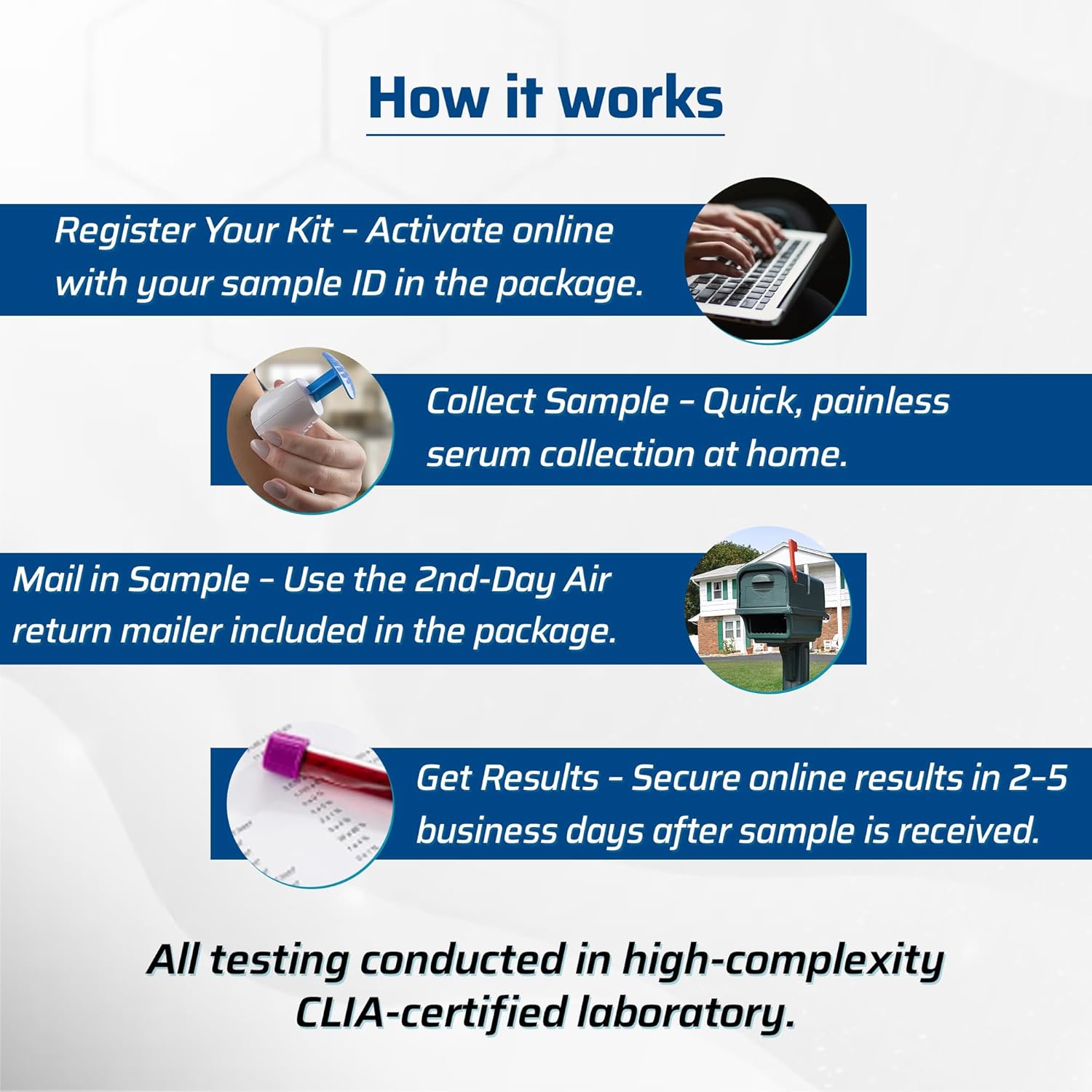 Painless, At-home Collection – Easy at-home collection with a true serum sample (not dried blood spots) for a comfortable experience with accuracy.