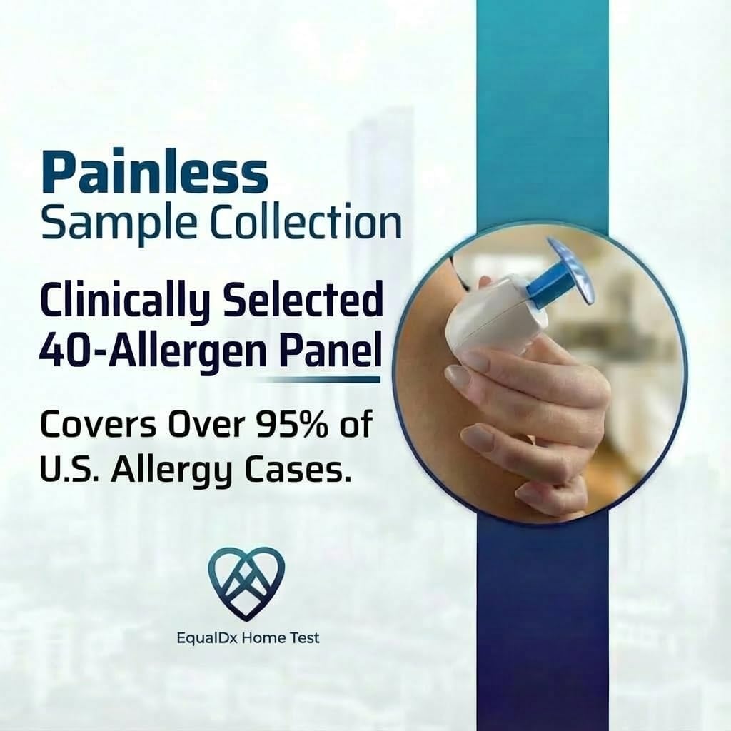 Comprehensive Allergy Test: This 40-item IgE allergy panel is carefully selected by board-certified allergists to cover the allergens responsible for more than 95% (close to 98%) of real allergic reactions. It includes the most clinically relevant food and environmental triggers, providing accurate insights to help you reduce symptoms, understand your sensitivities, and create a safer daily environment for you and your family.