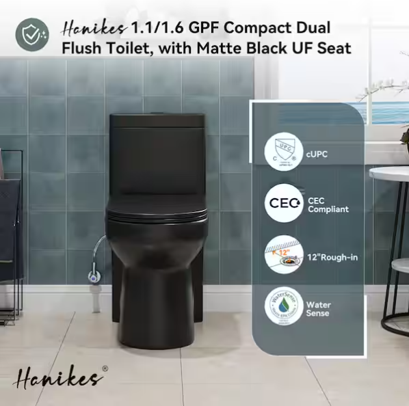 Efficient dual flush (1.1/1.6 GPF) to save water