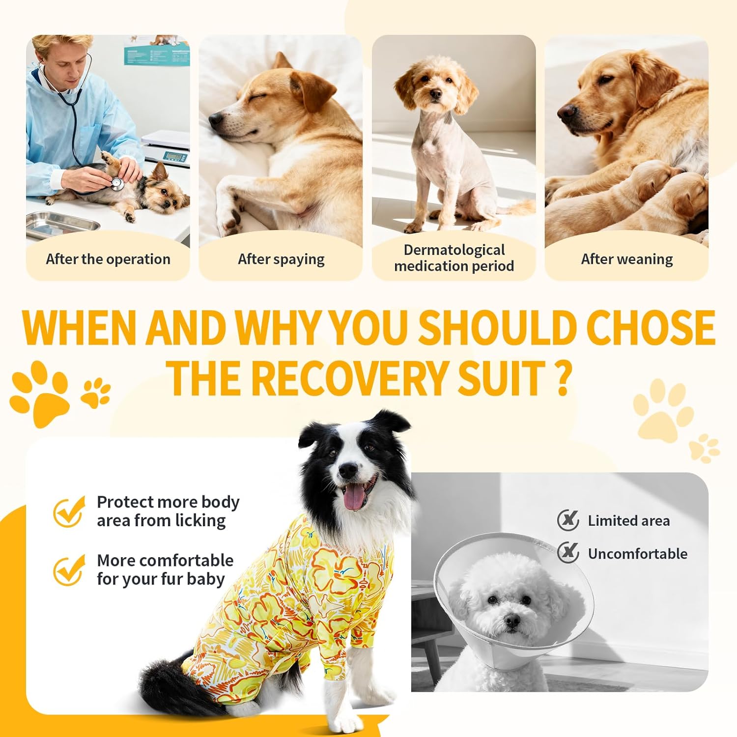 【Protect Your Furry Baby】The dog surgery suit female spay can effectively prevent scratching, licking, biting, and chewing after surgery, accelerates healing. Suitable for recovering of post operative, skin conditions, weaning, sterilization, hot spots, allergies and infection. Dog onesie also helps keep them warm after shaving.