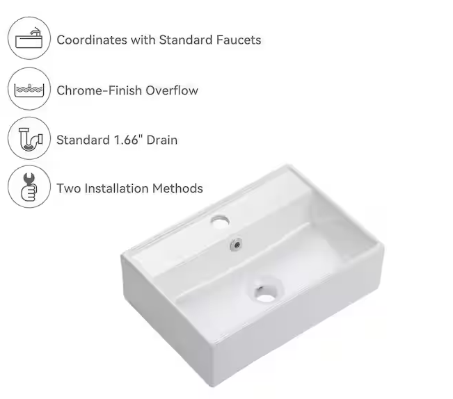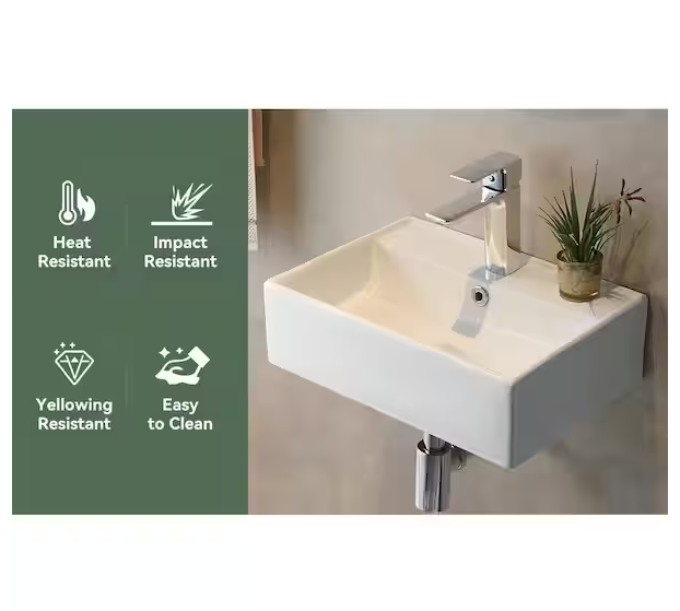 [V4767]Rectangular Wall-Mount Install or On Countertop Bathroom Sink 17.72 in-(Image review)
