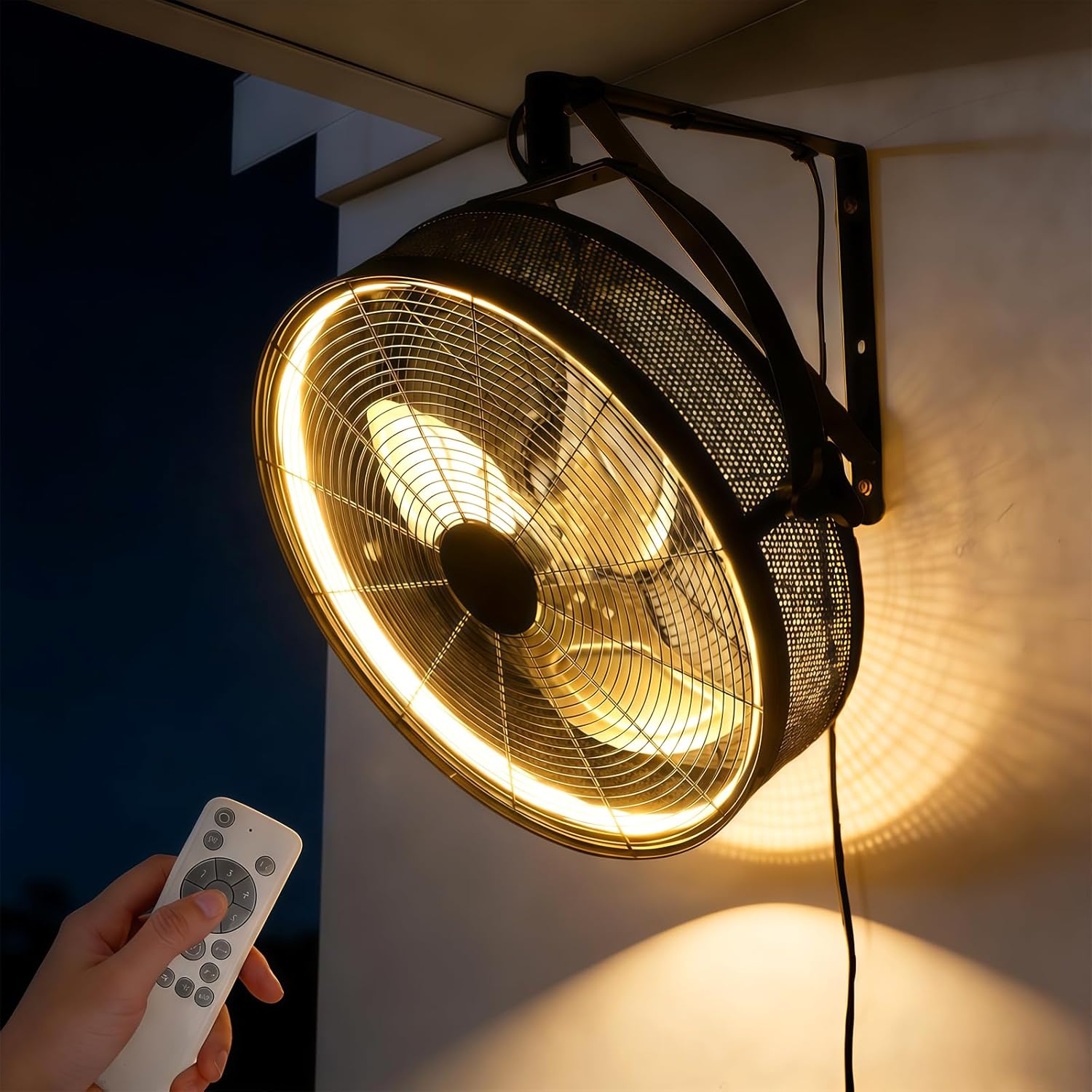 【Safety & 6-Speed】This outdoor wall-mounted fan features a sturdy, compact design for enhanced safety. Its high-performance motor delivers powerful airflow with 6 adjustable speeds, ranging from gentle breezes to strong gusts. The wall mounted fan with light is ideal for indoor spaces of 8-12 square meters, such as homes, offices, garages, workshops, warehouses, and covered outdoor areas like patios and gazebos. [Note: Not waterproof]