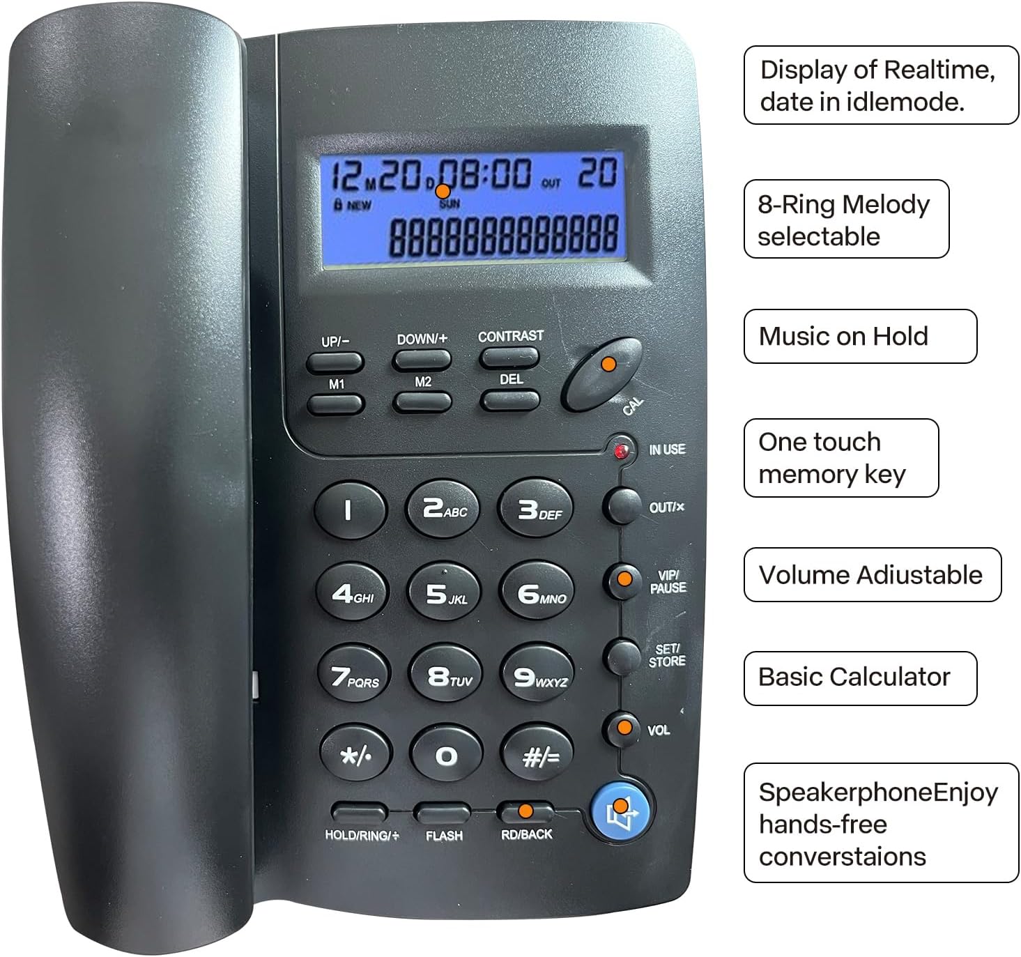 [V]Téléphone Filaire avec Haut-Parleur, Affichage, Calculatrice de Base et Identification de l'appelant