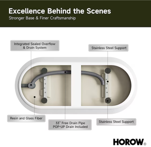 Includes 33 inches plumbing pipe that can be custom-installed to fit the drain location.
