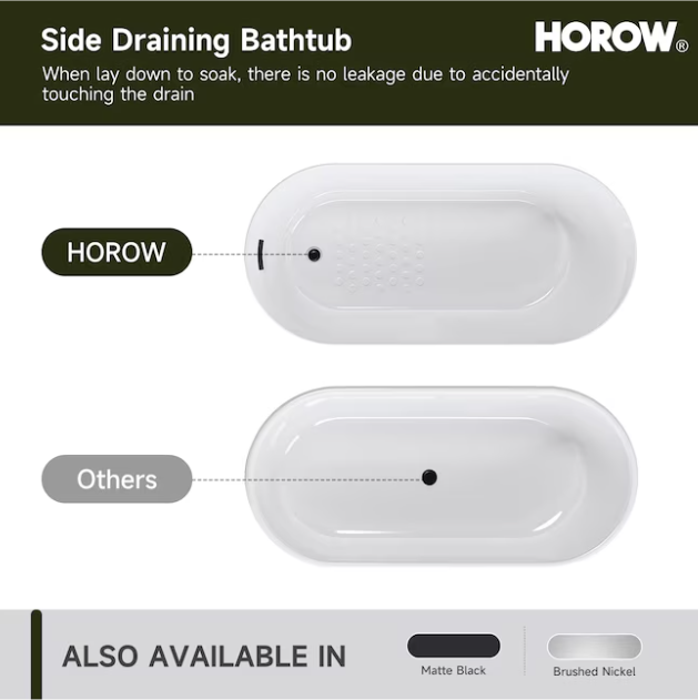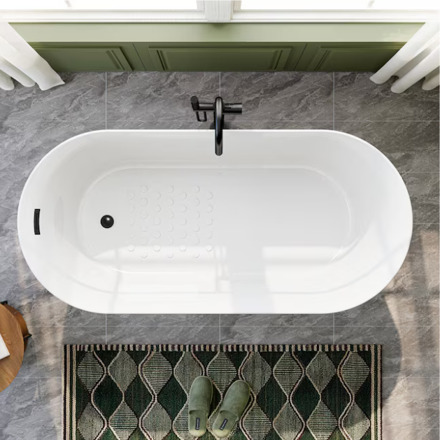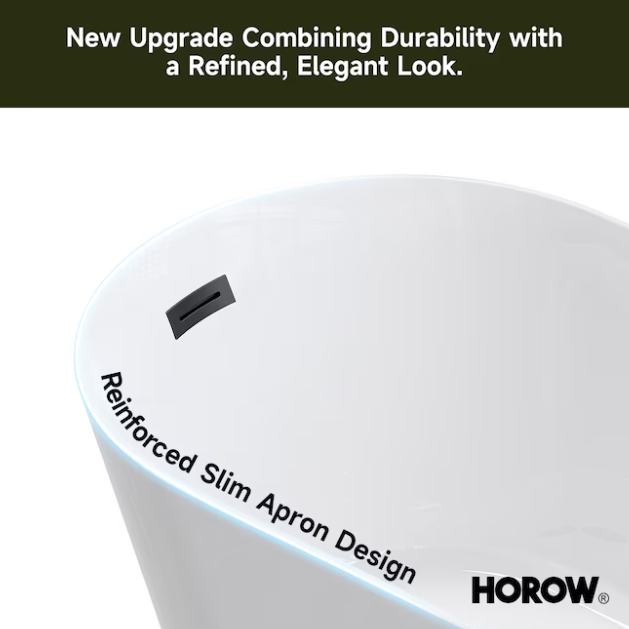 [V4871] Cozy Living 27.5-in x 59-in White Acrylic Rectangle Freestanding Soaking Bathtub with Drain ( Reversible Drain )-(Image review)