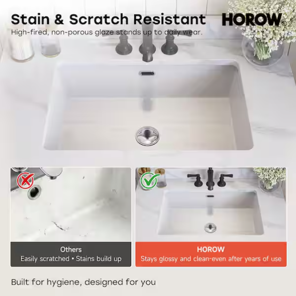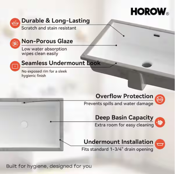 [V5025]23.6 in. L x 15.5 in. W Rectangle Undermount Bathroom Sink in White Porcelain Ceramic with Overflow-(Image review)