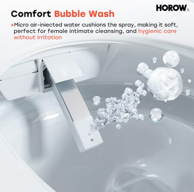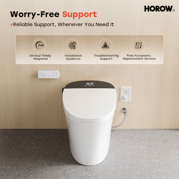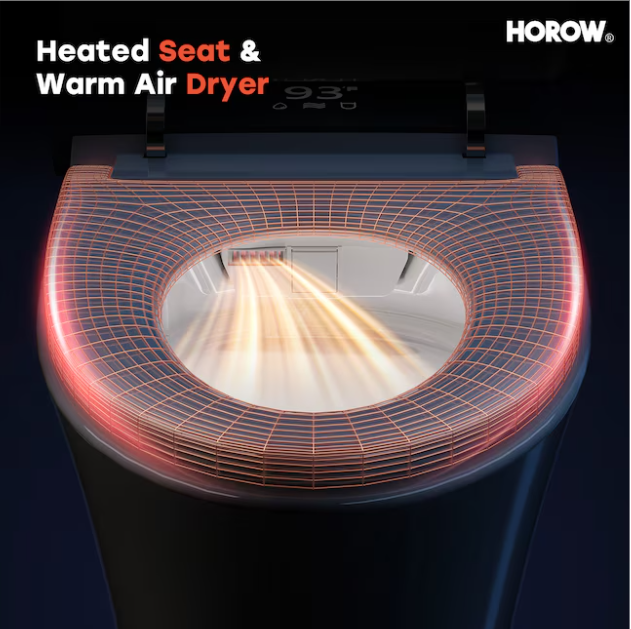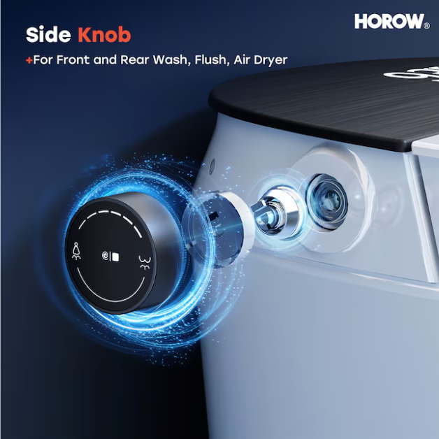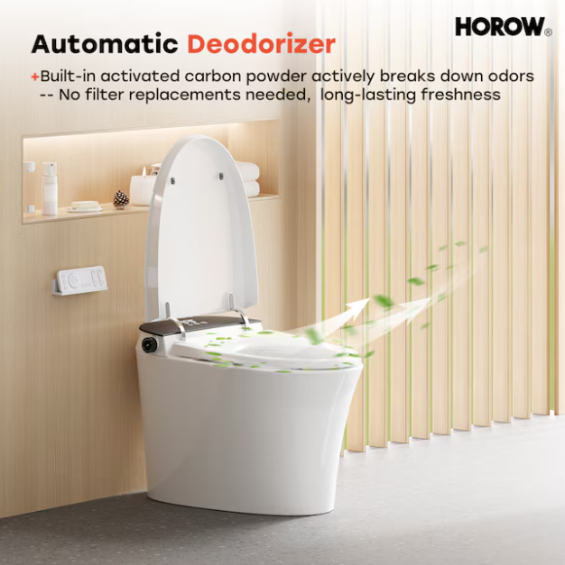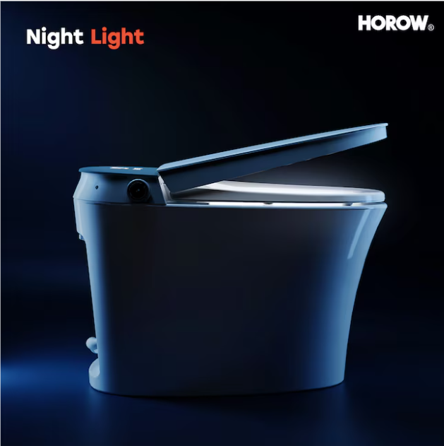 [V5038]HOROW ECO Mode White(Auto Flush) Single Elongated Standard Height Smart Soft Close 1-piece Bidet 12-in Rough-In 1.1 GPF-(Image review)