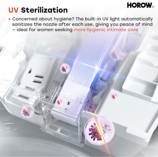 Hygienic and Customizable Cleaning: Curved design minimizes splashback, Adjustable nozzle position for rear/front wash, Customize your cleaning method with adjustable water