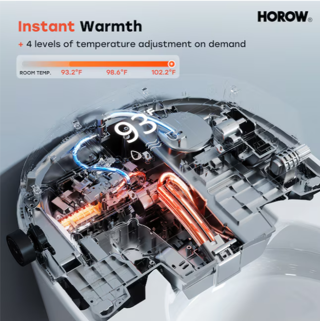 Instant Heating Comfort: The toilet has a heated seat, a warm air dryer, and instant warm water cleaning, These warm care support 4-level temperature adjustment, which can be