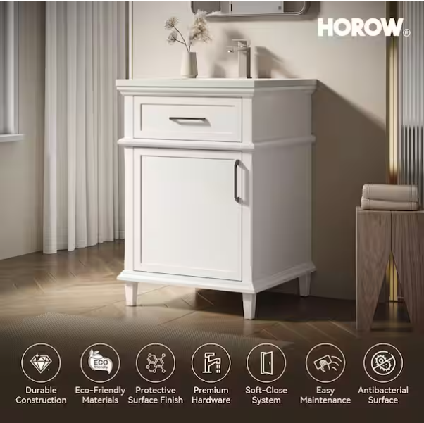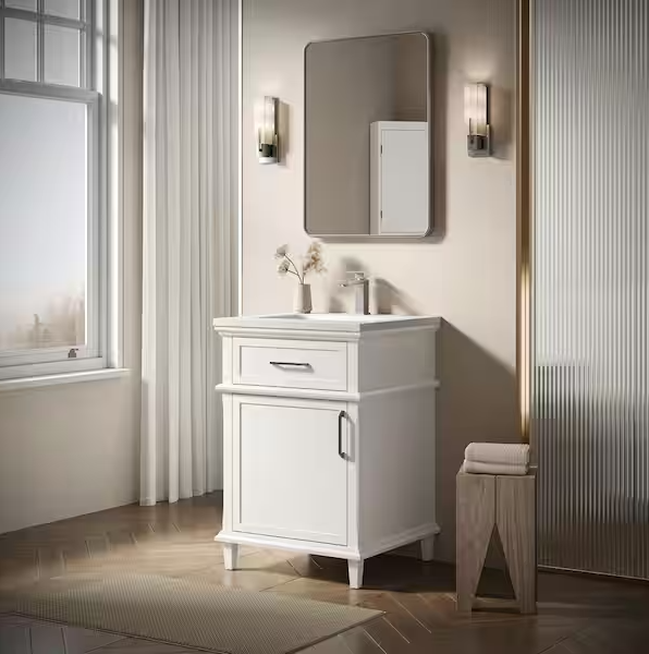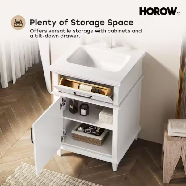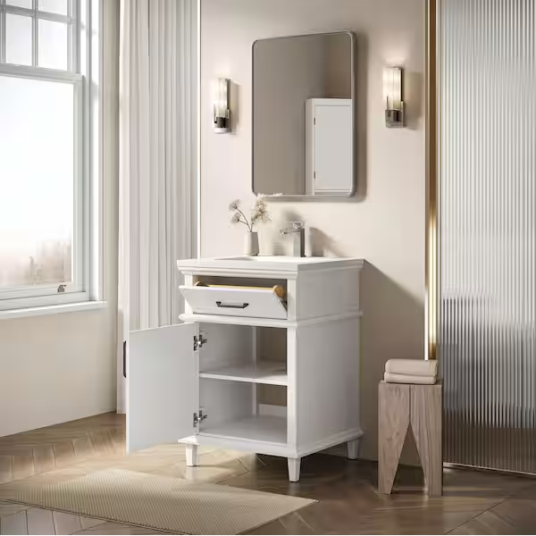 [V5089]Velora 24 in. W x 22 in. D x 34 in. H Bath Vanity Cabinet without Top in White Assembled