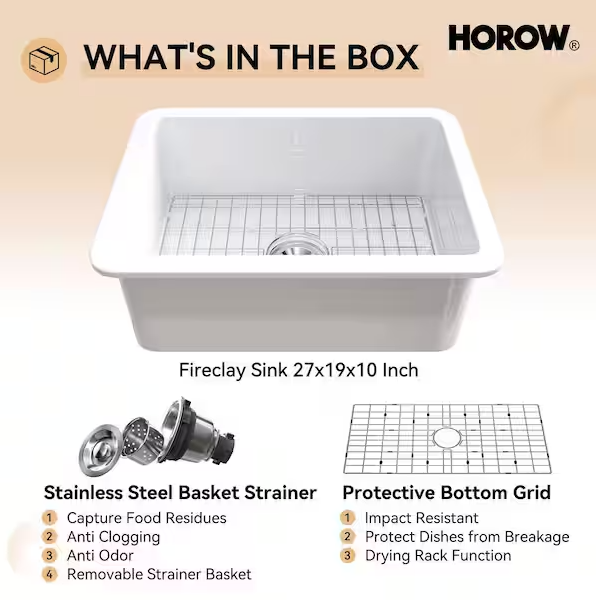[V4867]CozyStream 27 in. Undermount/Drop-In Single Bowl White Fireclay Kitchen Sink with Bottom Grid and Strainer-(Image review)