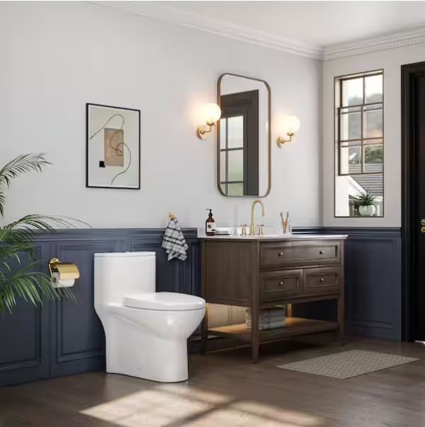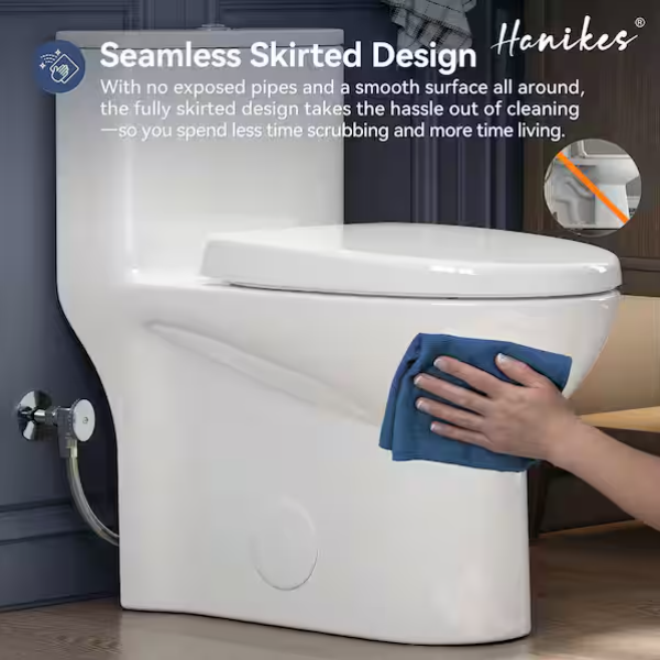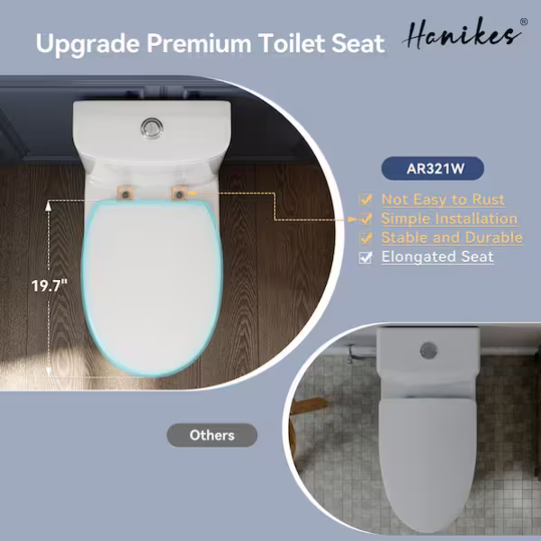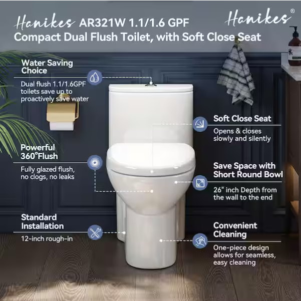 [V]1-Piece 1.1/1.6 GPF Dual Flush Compact Elongated WaterSense Toilet in White Soft Close Seat Included-(Image review)