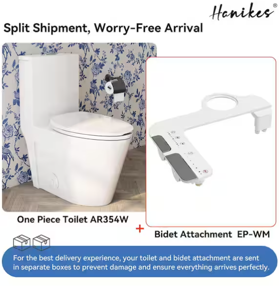 [V]ADA Height Dual Flush Toilet in White 1.1/1.6 GPF with Warm Bidet Attachment, Multi Clean & Nozzle Guard-(Image review)