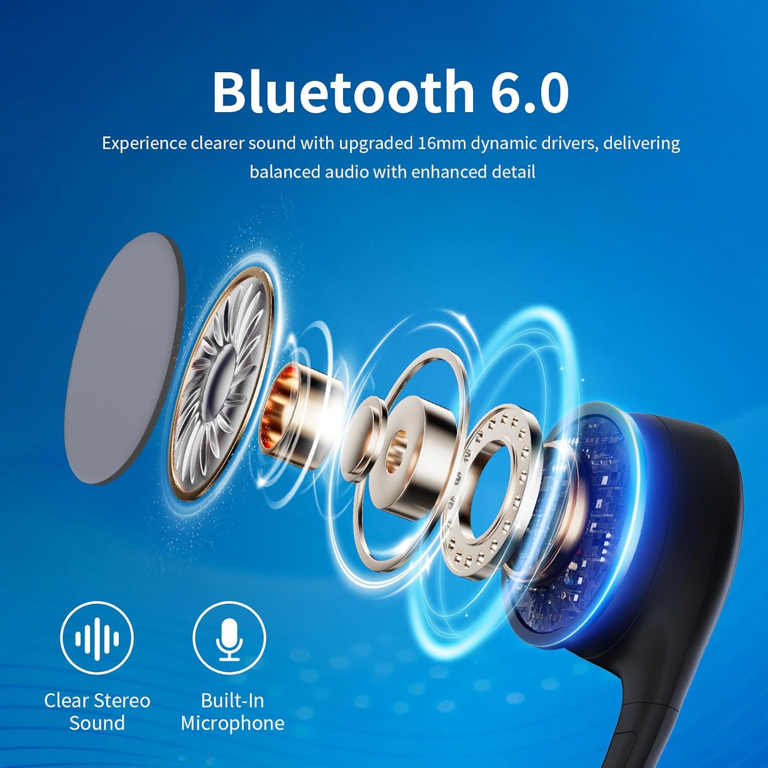 Latest Bluetooth 6.0 & Extended Playtime:Equipped with Bluetooth 6.0, these Bone conduction earbuds ensure an instant, stable wireless connection to your devices. Enjoy up to 10 hours of music, calls, or podcasts on a single charge, with 100 hours of standby time via the convenient Type-C fast charging port.