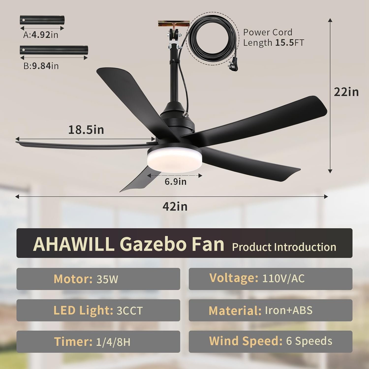 [V]AHAWILL Outdoor Ceiling Fan with Lights and Remote,42" Hanging Gazebo Fan