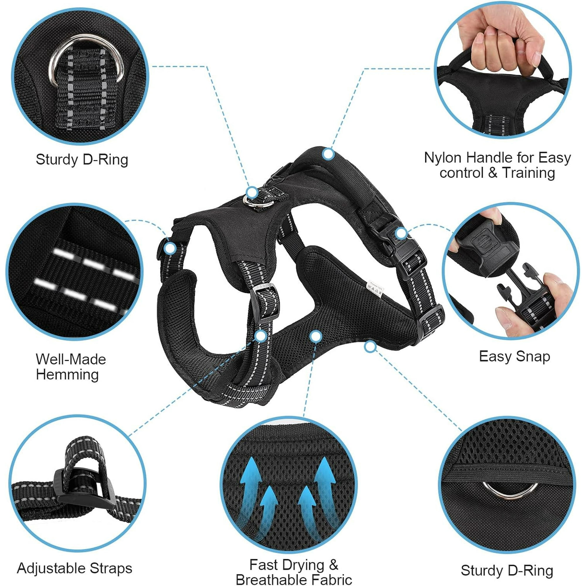 【Convenient traction, stable and durable 】 The back is reinforced with a D-shaped ring, supporting hook-type or snap-on type traction ropes. The anti-drop design ensures a stable connection during intense exercise. Reserve the position for the training rope buckle on the front chest to meet the needs of behavioral training