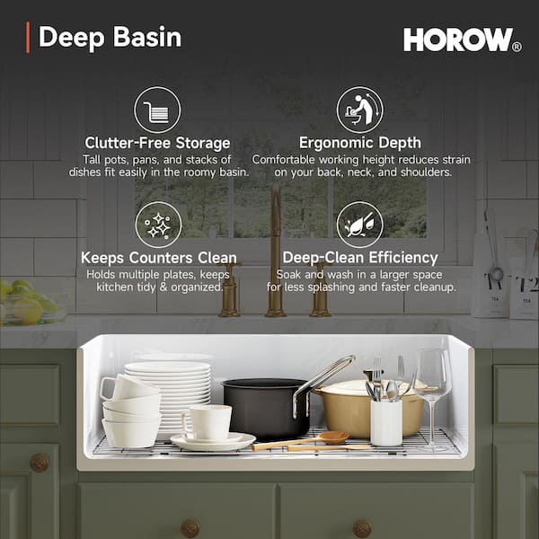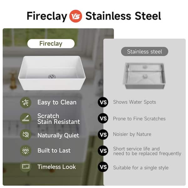 Fireclay material resists scratches and mold, also easy to clean