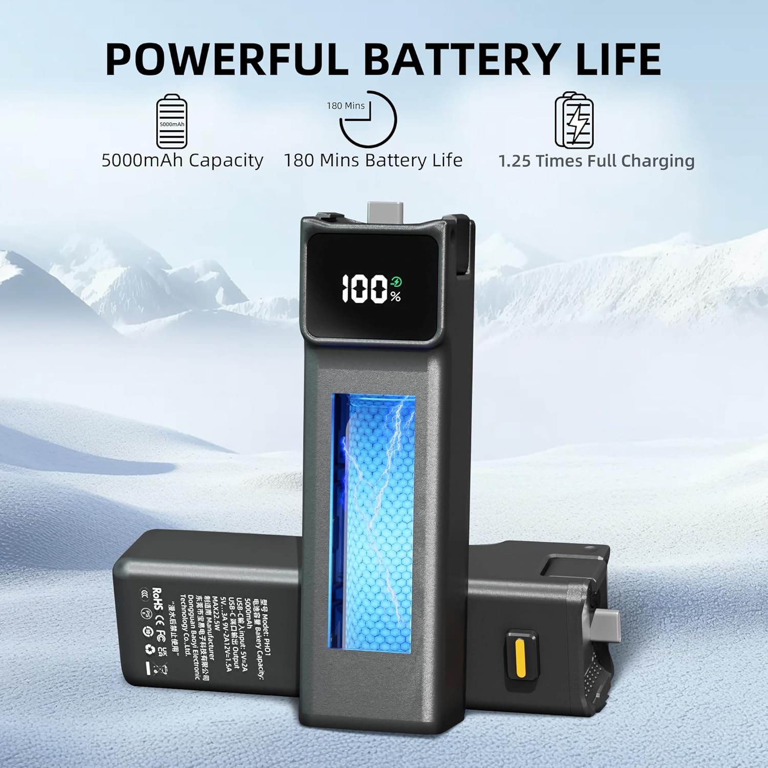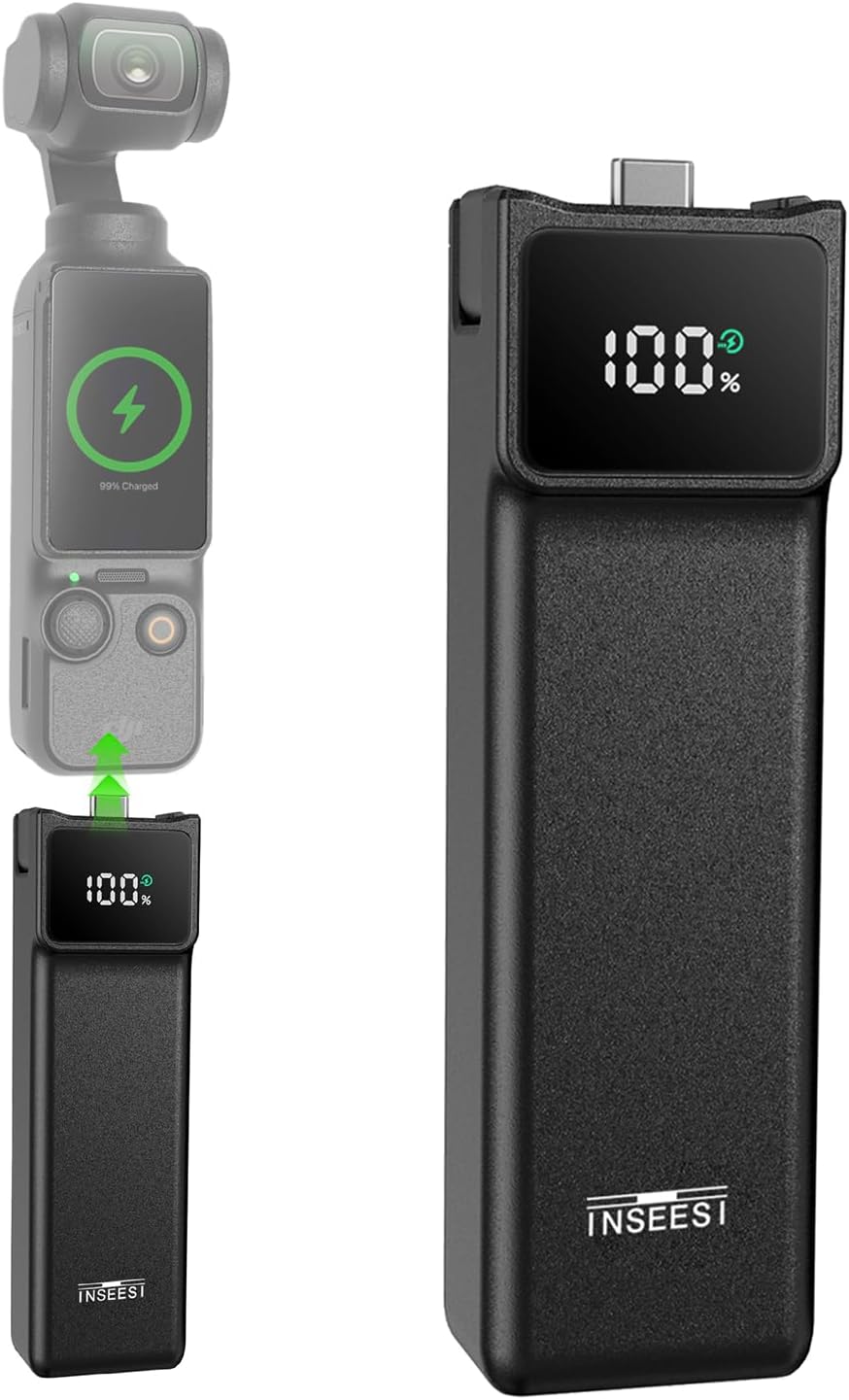 【5000mAh Large Capacity Battery handle】Equipped with a built-in 5000mAh battery, the battery handle for Pocket 3 provid nearly 180 minutes of additional battery life and can fully charge your Pocket 3 camera 1.25 times