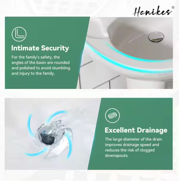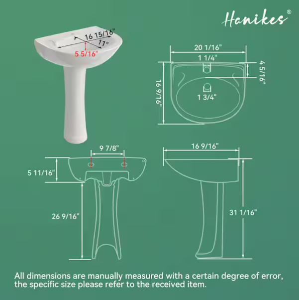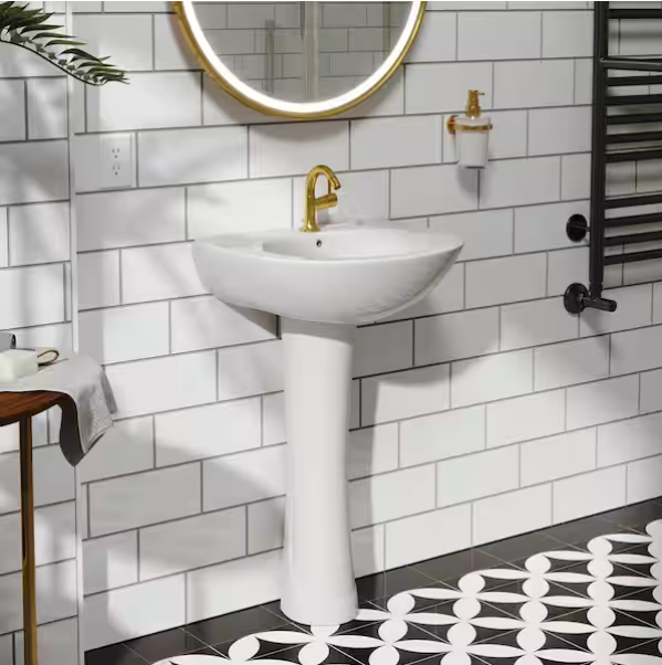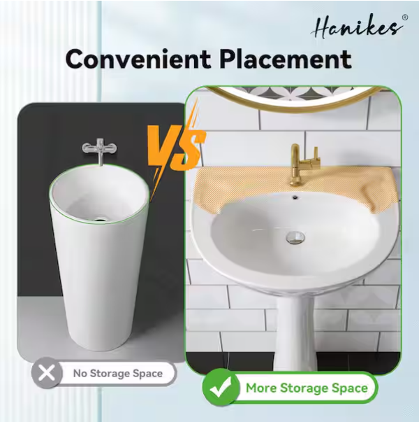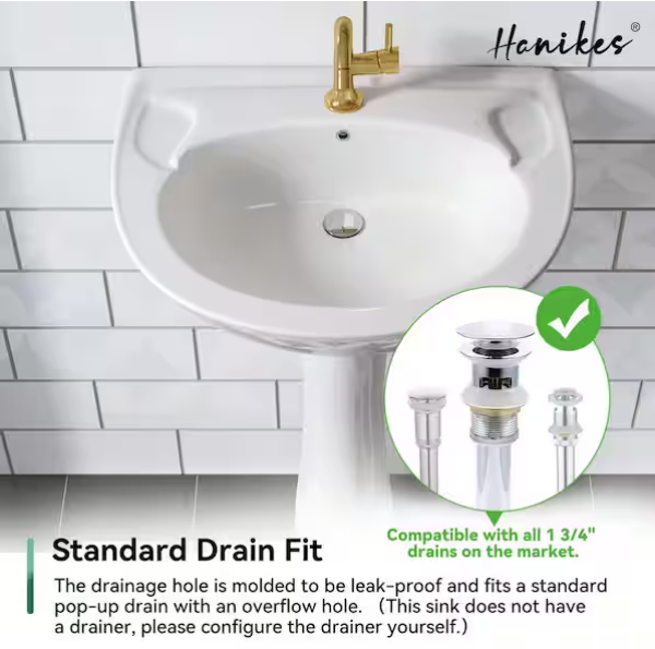 [V4139]Classic 20 in. Tall U-Shape White Vitreous China Pedestal Bathroom Sink With Overflow-(Image review)