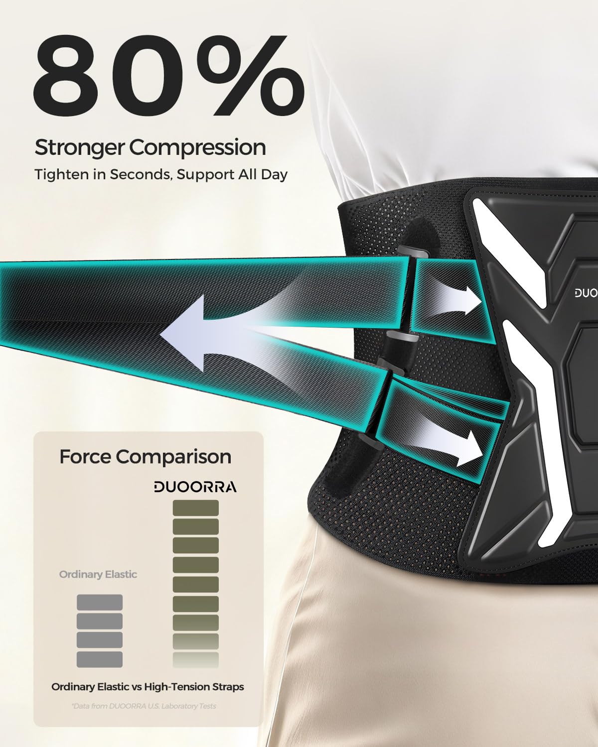 Precision Fit & High-Tension Compression - DUOORRA’s compact-length, high-strength elastic strap system delivers measurable compression proven to be 80% stronger than standard elastic bands. This upgraded design allows the adjustable high-tension straps to cinch quickly, lock firmly in place, and maintain steady, even compression that you can fine-tune in seconds for personalized support.