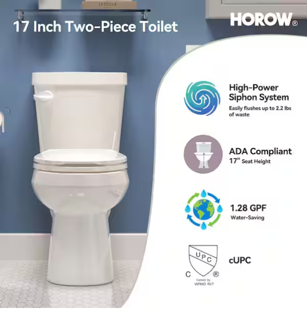 [V4171]17 in. ADA 2-Piece 1.28 GPF Single Flush Elongated Toilet in White Flush, Soft-Close Seat Included-(Image review)