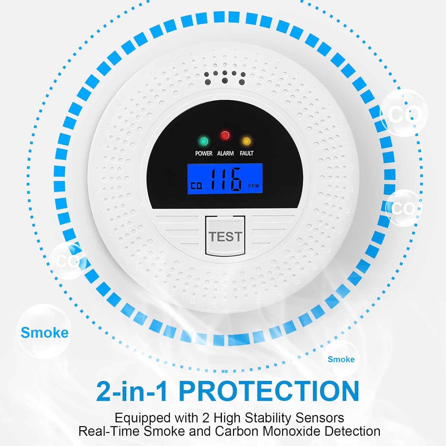 Precise Detection: Features built-in photoelectric smoke sensors and electrochemical CO sensors, ideal for enclosed spaces like bedrooms or rental units.