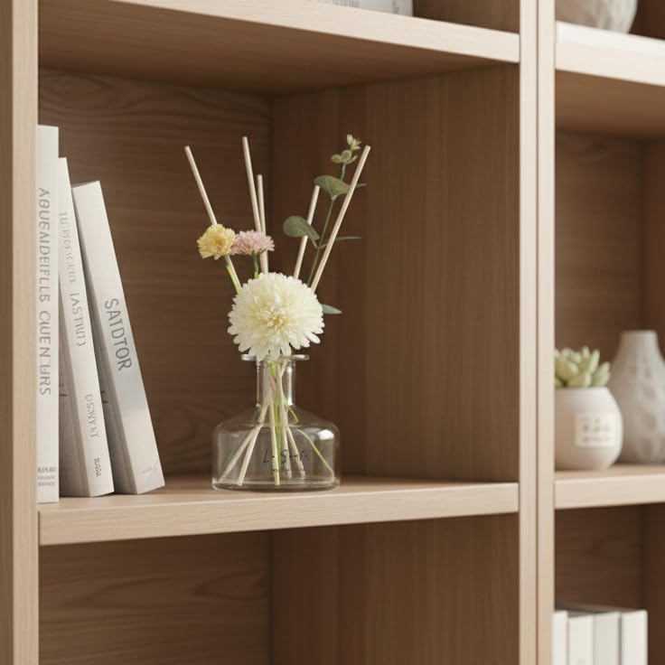 Decorative Flower Diffuser (Doubles as Décor) – Beautiful floral topper + reeds create a styled look for vanities, shelves, entry tables, and countertops.