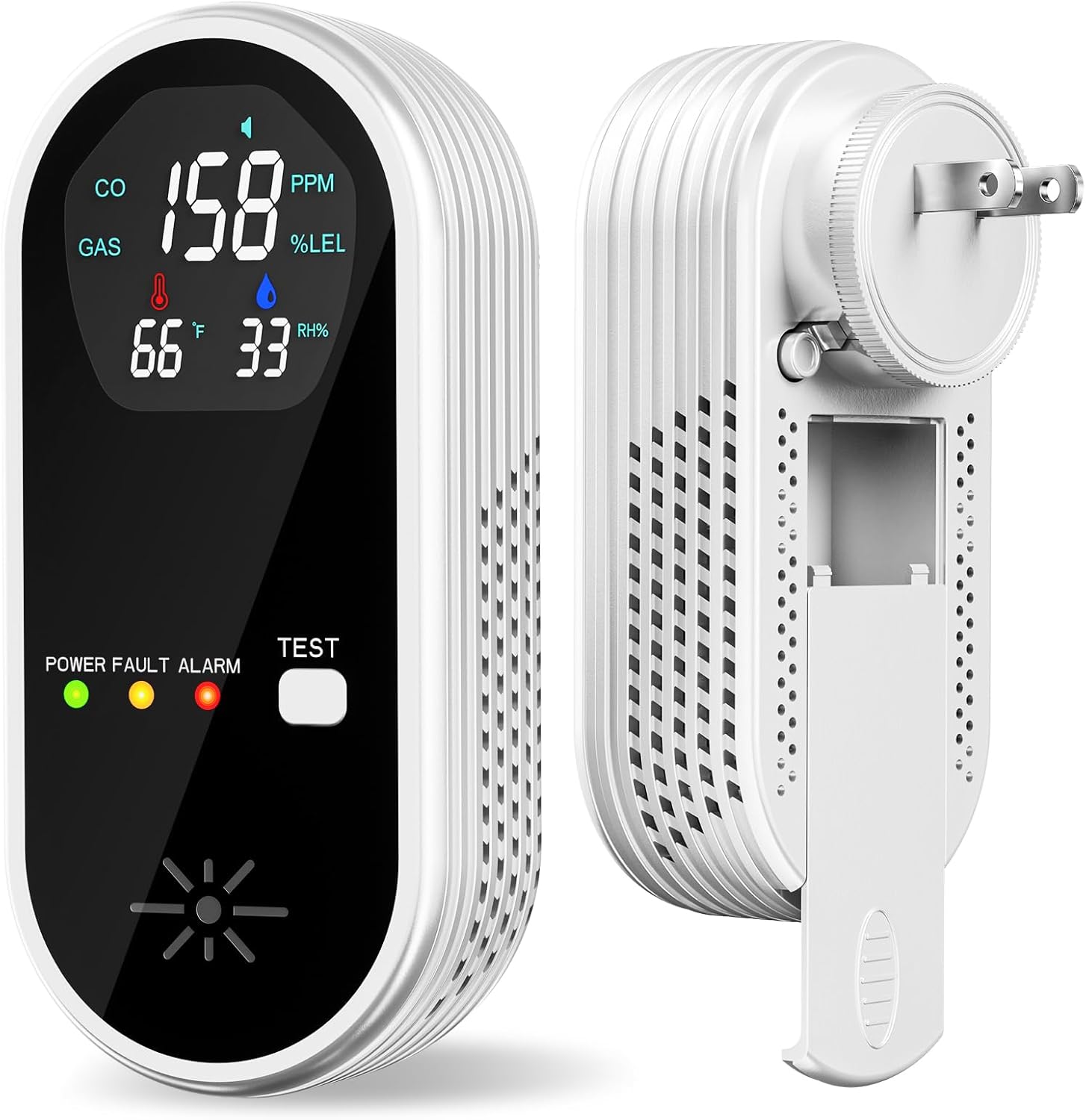5-in-1 Real-Time Monitoring: Tracks CO, Gas Leaks, Temperature, and Humidity on a clear digital screen for comprehensive home safety