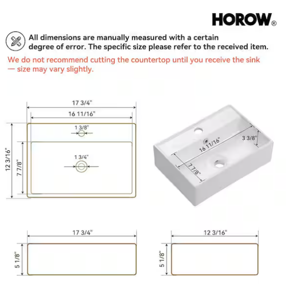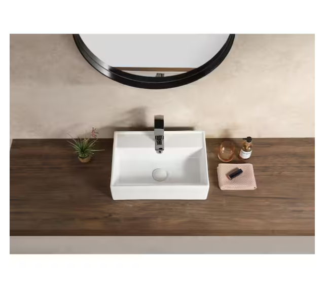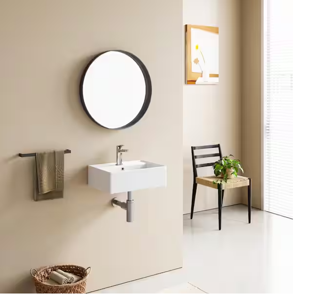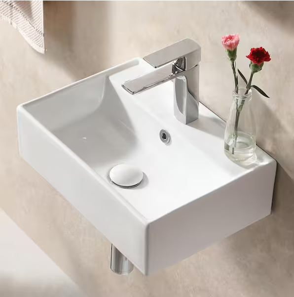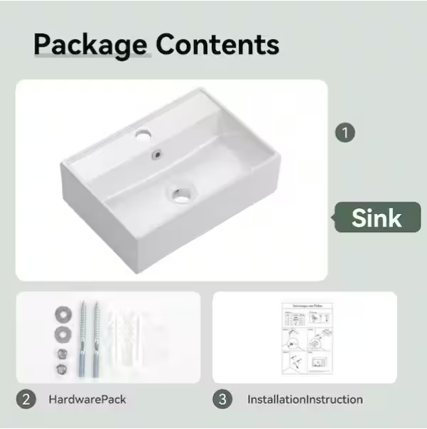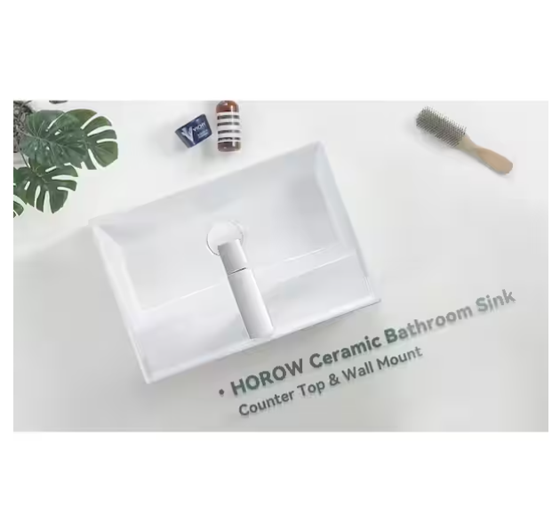 [V4767]Rectangular Wall-Mount Install or On Countertop Bathroom Sink 17.72 in-(Image review)
