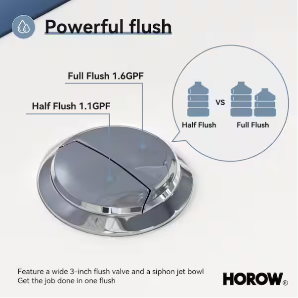 Delivers powerful 1.1 or 1.6 GPF for efficient flush performance