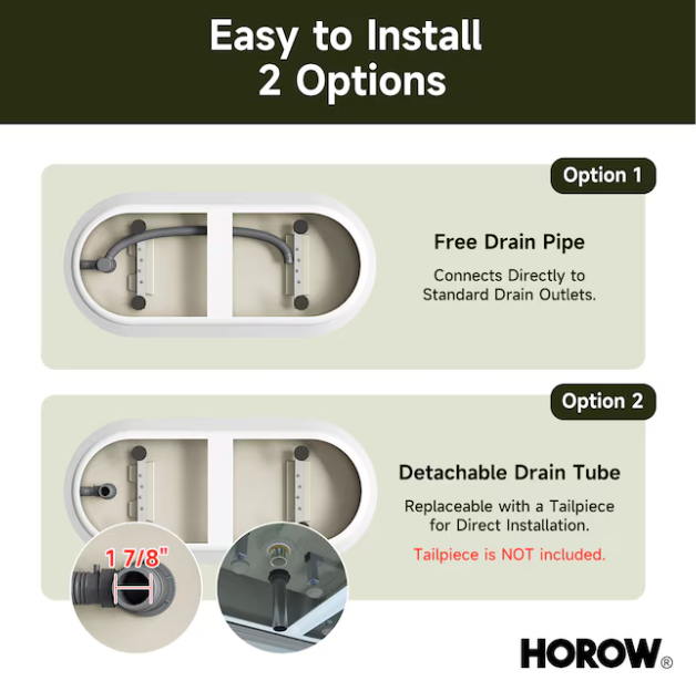 Includes 33 inches plumbing pipe that can be custom-installed to fit the drain location.