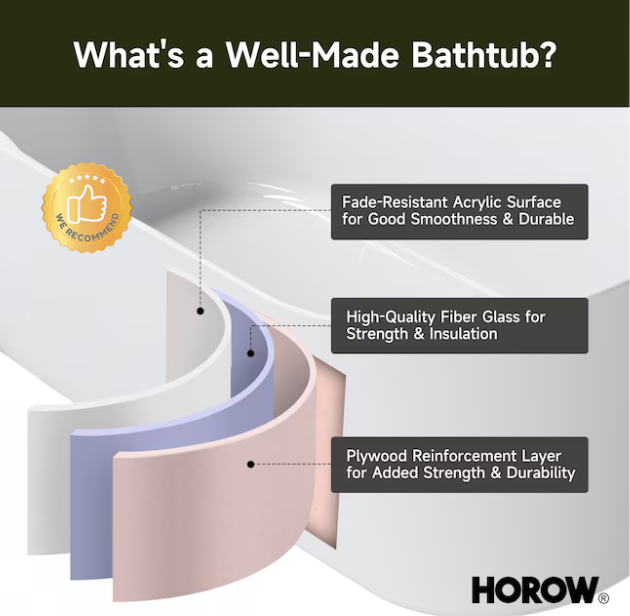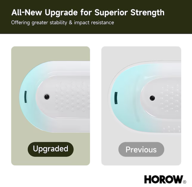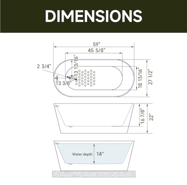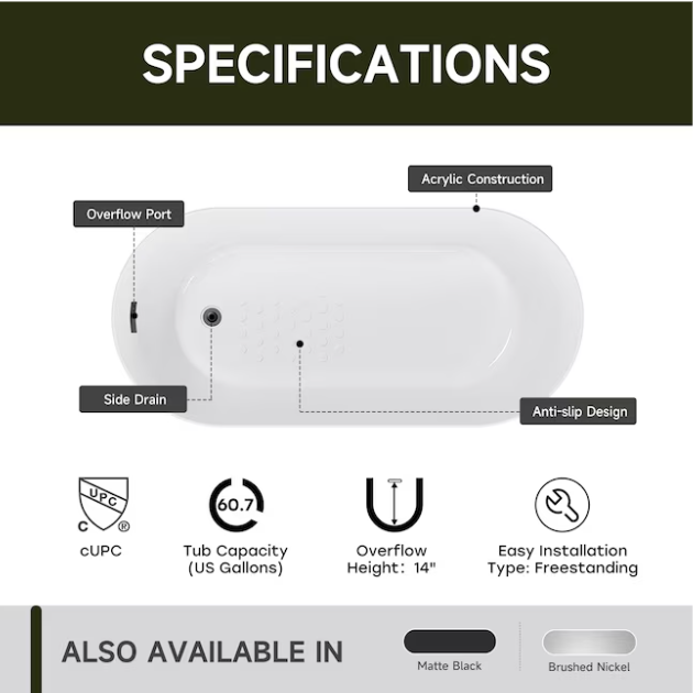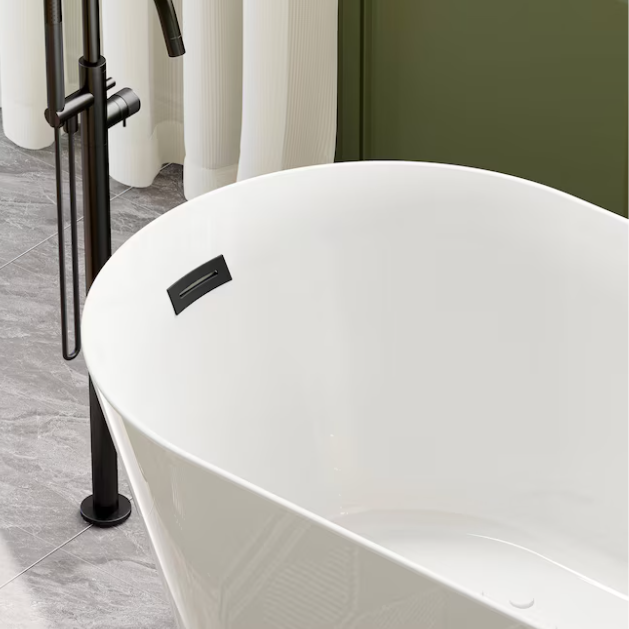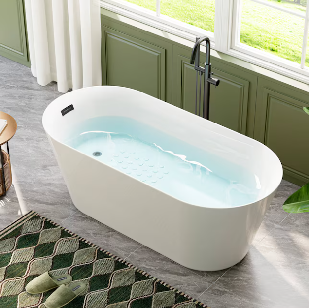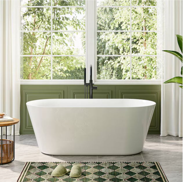 [V4871] Cozy Living 27.5-in x 59-in White Acrylic Rectangle Freestanding Soaking Bathtub with Drain ( Reversible Drain )-(Image review)