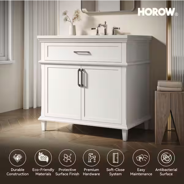 [V5088]Velora 36 in. W x 22 in. D x 34 in. H Bath Vanity Cabinet without Top in White Assembled