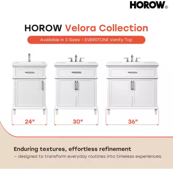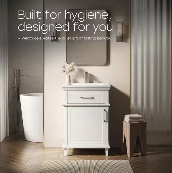 [V5089]Velora 24 in. W x 22 in. D x 34 in. H Bath Vanity Cabinet without Top in White Assembled