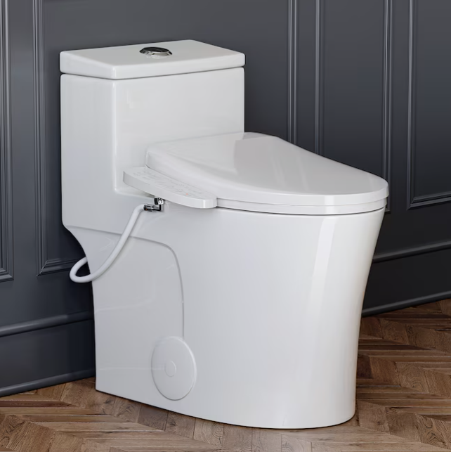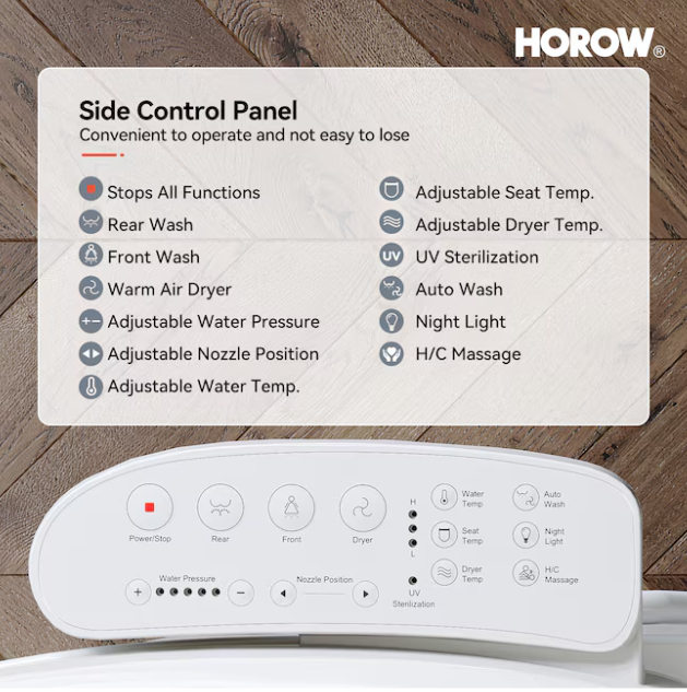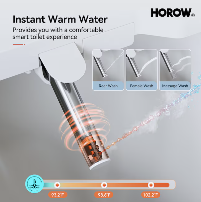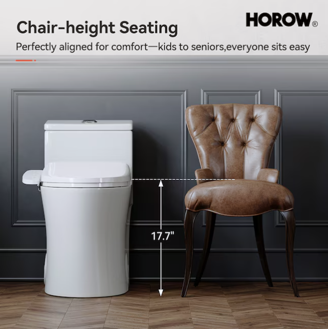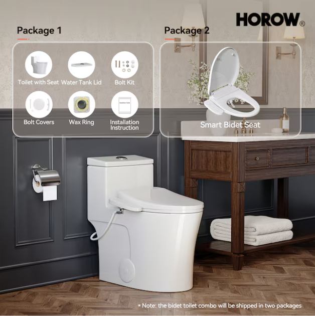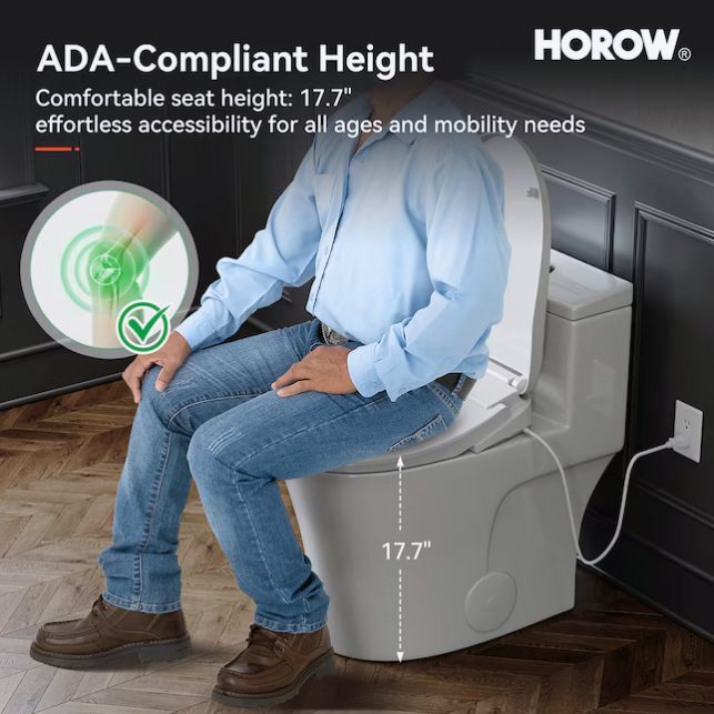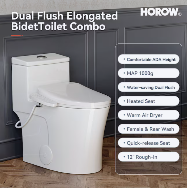 [V4926]HOROW Elongated 0.8/1.28 GPF Dual Flush 17 in. ADA Chair Height Toilet in White with Smart Bidet Seat MAP Flush 1000g 1-Piece-(Image review)