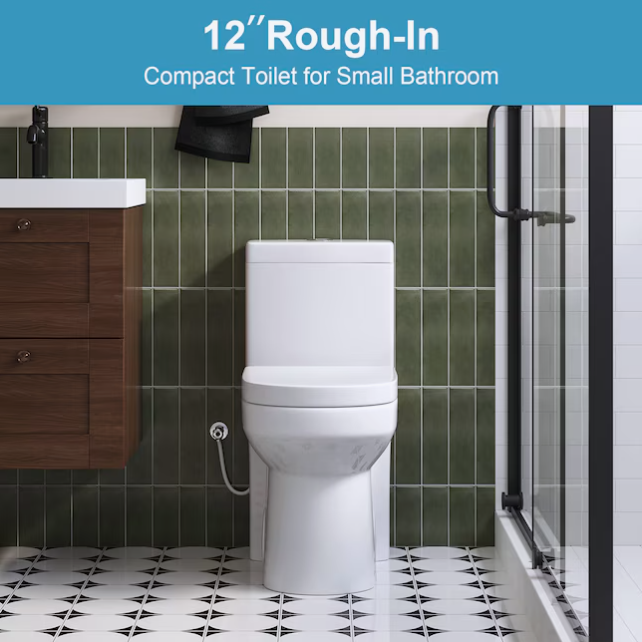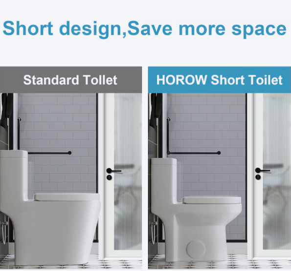 [V5112]HOROW Compact Toilet White Round Standard height 12-in Rough-In WaterSense 1.6 GPF Dual Flush Soft Close 1-piece Toilet-(Image review)