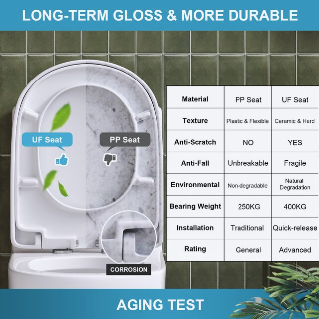 Easy to install: this short 1-piece toilet have two big opening holes on the side to fix the toilet much easier, soft closing UF seat is included to facilitate installation and use, the most