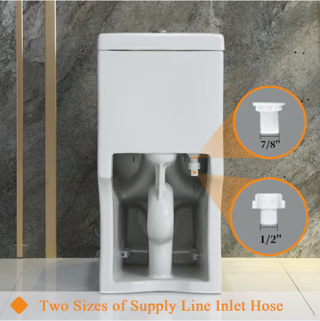 2 sizes of supply line inlet hose: this supply line inlet hose of the toilet works for the U,S, standard 7/8 in, waterline, an adapter for 1/2 in, waterline is pre-installed, if your supply line