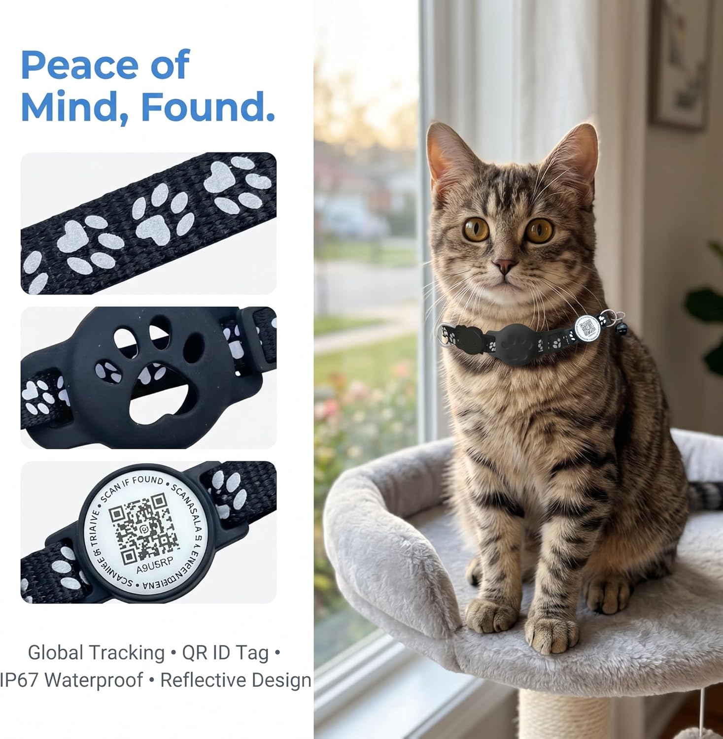 [V5152]Cat Tracker with QR Code GPS Collar for Cats Electronic Pet Locator Waterproof-(Pure text review)