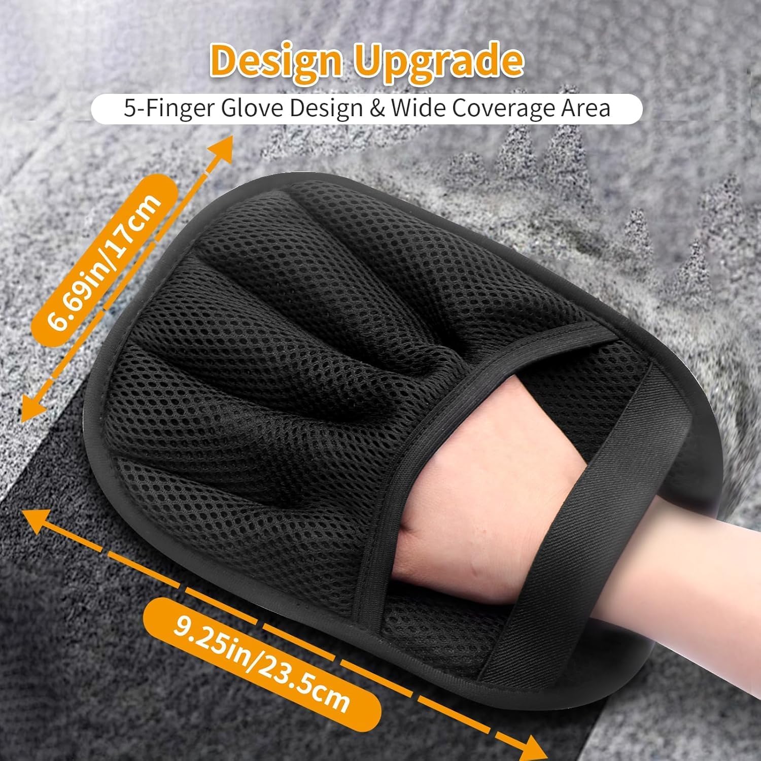 【Upgraded Design with Secure Fit & Larger Coverage】Featuring an anti-slip five-finger structure and adjustable straps, this glove fits most hand sizes comfortably and securely. With expanded dimensions (9.25" x 6.69"), it covers more surface area for faster, more efficient cleaning than standard gloves.